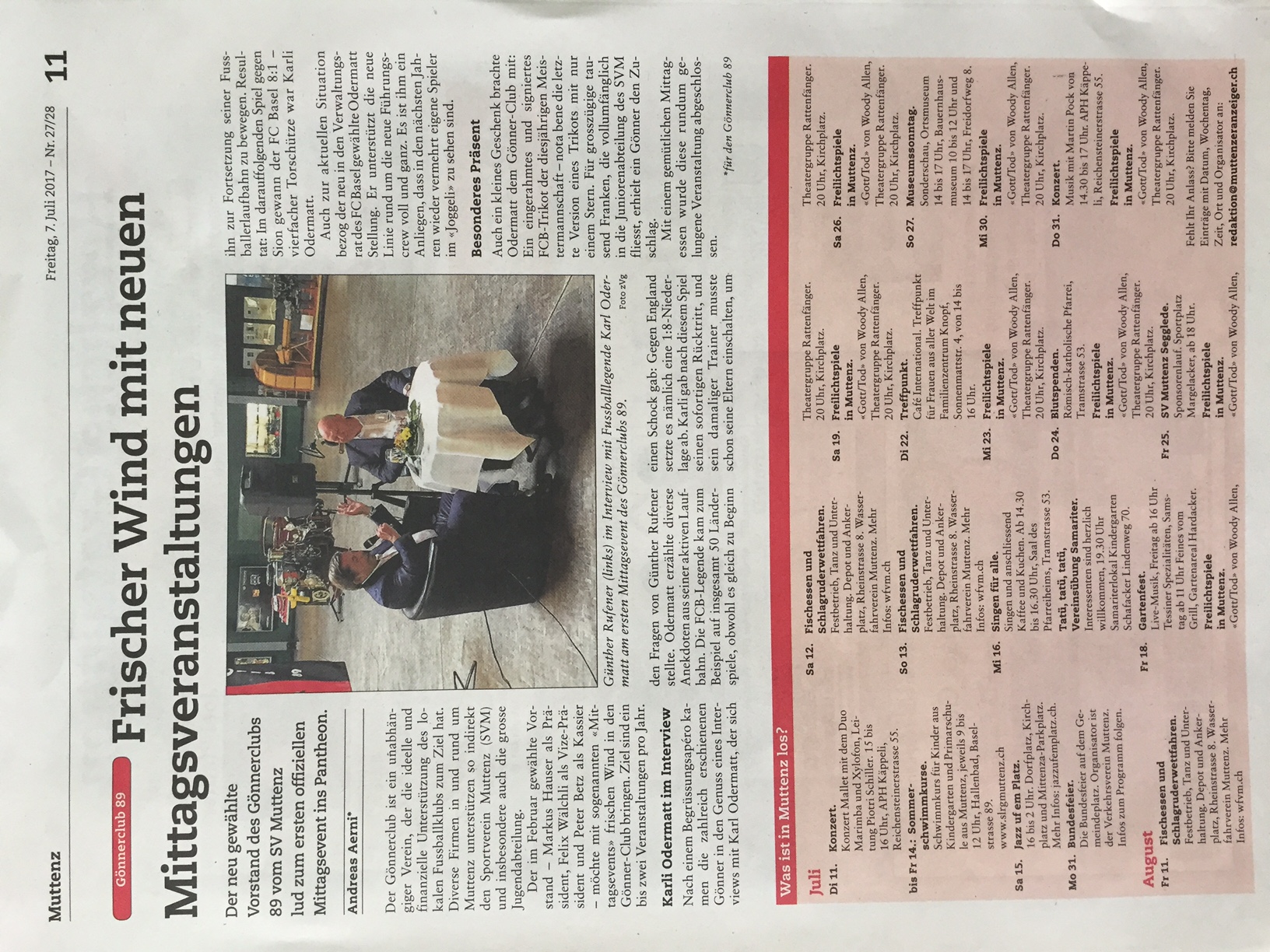 Bericht Muttenzer Anzeiger vom Anlass: